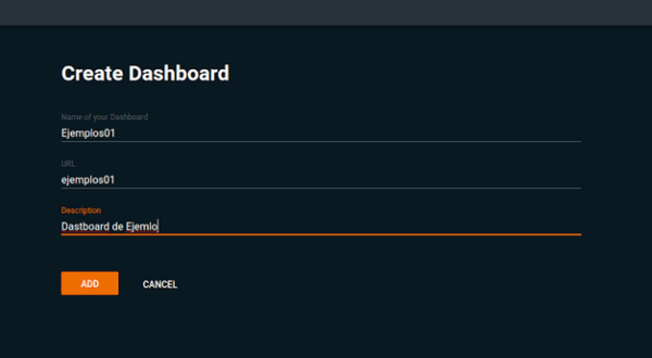 Una vez concluido el llenado del formulario se debe dar clic en el botón de ADD, para finalizar la creación del nuevo dashboard.