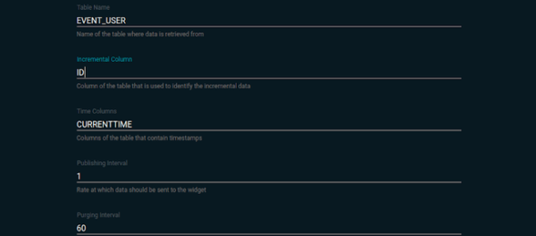 | Table Name | Nombre de la tabla.Ejemplo: EVENT_USER |