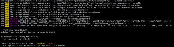 > generator-widget@1.0.0 init /home/chakray/wso2am-analytics-3.1.0/wso2/tools/generator-widget > npm i && npm link audited 729 packages in 2.356s 13 packages are looking for funding run `npm fund` for details found 0 vulnerabilities audited 729 packages in 2.174s 13 packages are looking for funding run `npm fund` for details found 0 vulnerabilities /usr/local/lib/node_modules/generator-widget -> /home/chakray/wso2am-analytics-3.1.0/wso2/tools/generator-widget