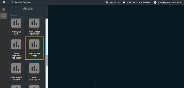 4.5 Con la ayuda del scroll buscaremos por el nombre que asignamos a nuestro widget, para este ejemplo se llama APIM Sample Widget