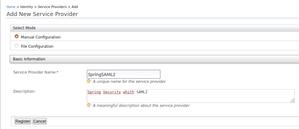 - Hacer clic en Register para agregar el nuevo proveedor de servicios.