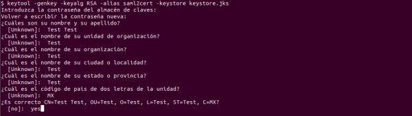 Al ejecutar el comando se solicitará una contraseña para el KeyStore y posteriormente se solicitará además información como a continuación se muestra.