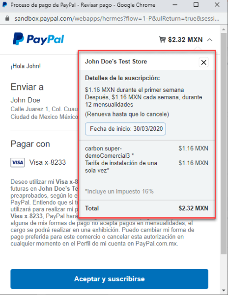 Al suscribirse a una API, simultáneamente se redirigirá al sitio de PayPal para realizar la suscripción al plan seleccionado.