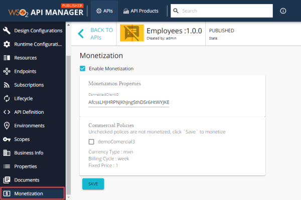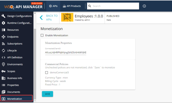 3. Configure las propiedades de monetización adicionales que son específicas del motor de facturación en WSO2 API Manager.