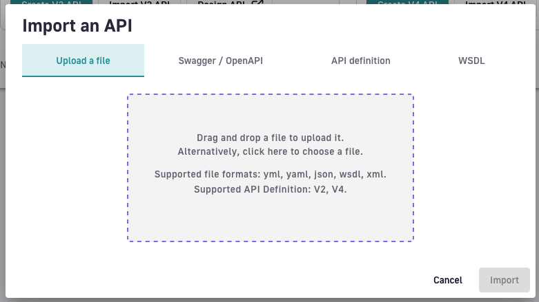 - Importar la especificación OpenAPI en el API Manager (en nuestro caso estamos utilizando la solución de Gravitee.io)