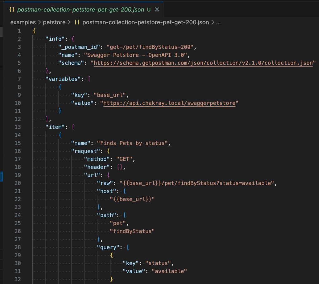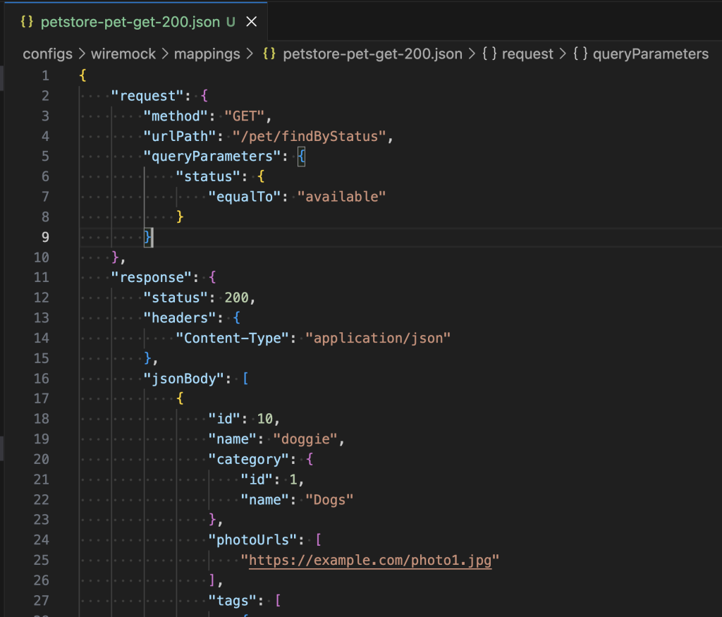 { «response»: { «wiremock_stub»: «{\»request\»:{\»method\»:\»GET\»,\»urlPath\»:\»/pet/findByStatus\»,\»queryParameters\»:{\»status\»:{\»equalTo\»:\»available\»}}},\»response\»:{\»status\»:200,\»headers\»:{\»Content-Type\»:\»application/json\»},\»jsonBody\»:[{\»id\»:1,\»name\»:\»doggie\»,\»category\»:{\»id\»:1,\»name\»:\»Dogs\»},\»photoUrls\»:[\»http://example.com/photos/doggie1.jpg\»],\»tags\»:[{\»id\»:10,\»name\»:\»cute\»}],\»status\»:\»available\»},{\»id\»:2,\»name\»:\»kitty\»,\»category\»:{\»id\»:2,\»name\»:\»Cats\»},\»photoUrls\»:[\»http://example.com/photos/kitty1.jpg\»,\»http://example.com/photos/kitty2.jpg\»],\»tags\»:[{\»id\»:20,\»name\»:\»fluffy\»}],\»status\»:\»available\»}]}}», «postman_collection»: «{\»info\»:{\»_postman_id\»:\»get-/pet/findByStatus-200\»,\»name\»:\»Swagger Petstore – OpenAPI 3.0\»,\»description\»:\»This is a sample Pet Store Server based on the OpenAPI 3.0 specification. You can find out more about Swagger at [https://swagger.io](https://swagger.io). In the third iteration of the pet store, we’ve switched to the design first approach! You can now help us improve the API whether it’s by making changes to the definition itself or to the code. That way, with time, we can improve the API in general, and expose some of the new features in OAS3.\\n\\nSome useful links:\\n- [The Pet Store repository](https://github.com/swagger-api/swagger-petstore]\\n- [The source API definition for the Pet Store](https://github.com/swagger-api/swagger-petstore/blob/master/src/main/resources/openapi.yaml)\»,\»schema\»:\»https://schema.getpostman.com/json/collection/v2.1.0/ … |