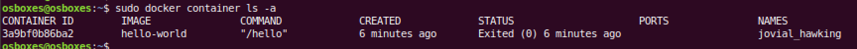 $ sudo docker container ls