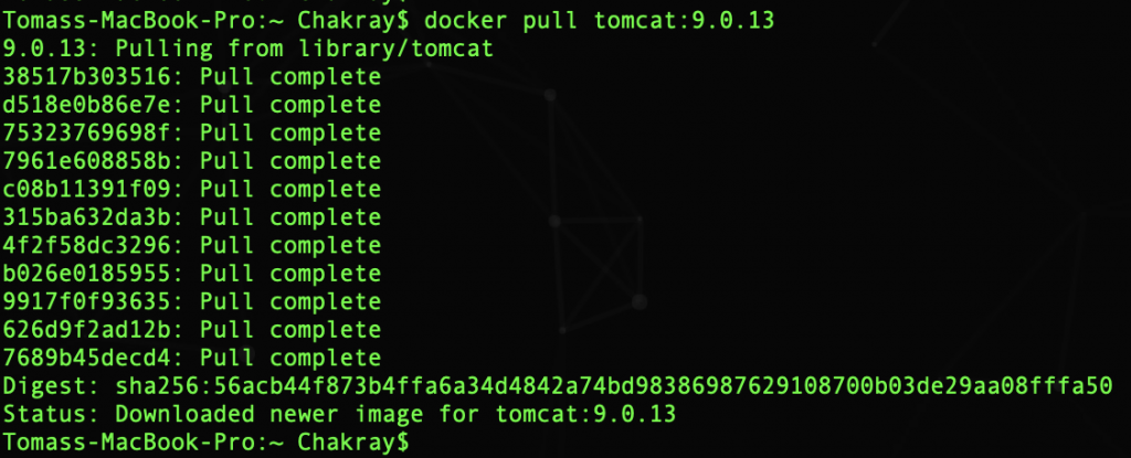 Con este comando se descarga la imagen: $ docker pull tomcat:9.0.13