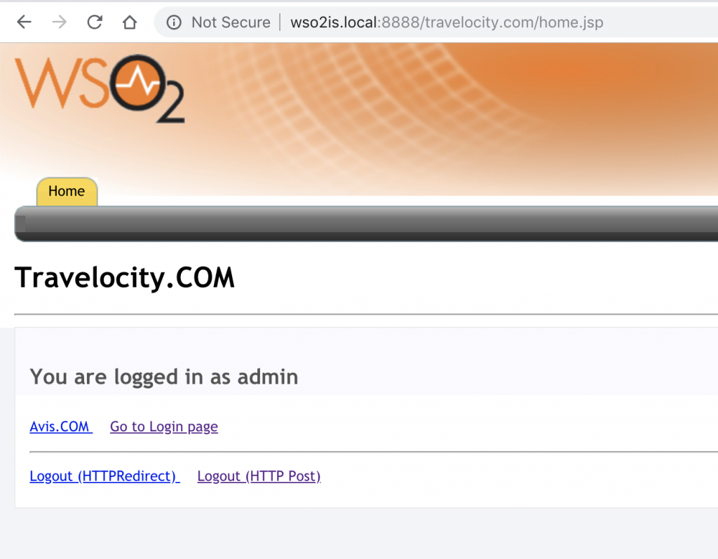 Es decir: http://wso2is.local:8888/travelocity.com/home.jsp