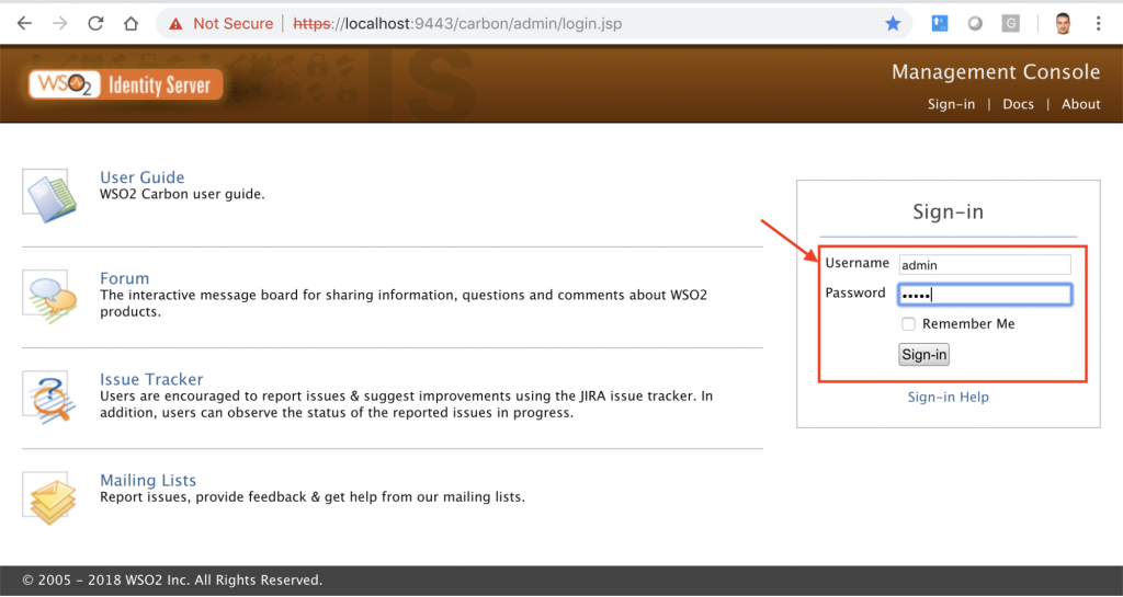 Selecciona: wso2carbon