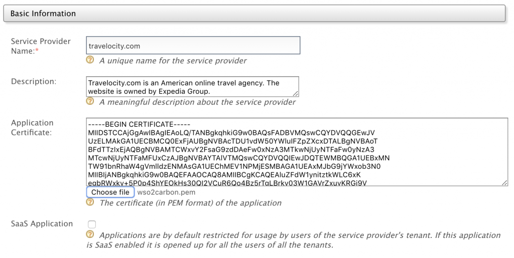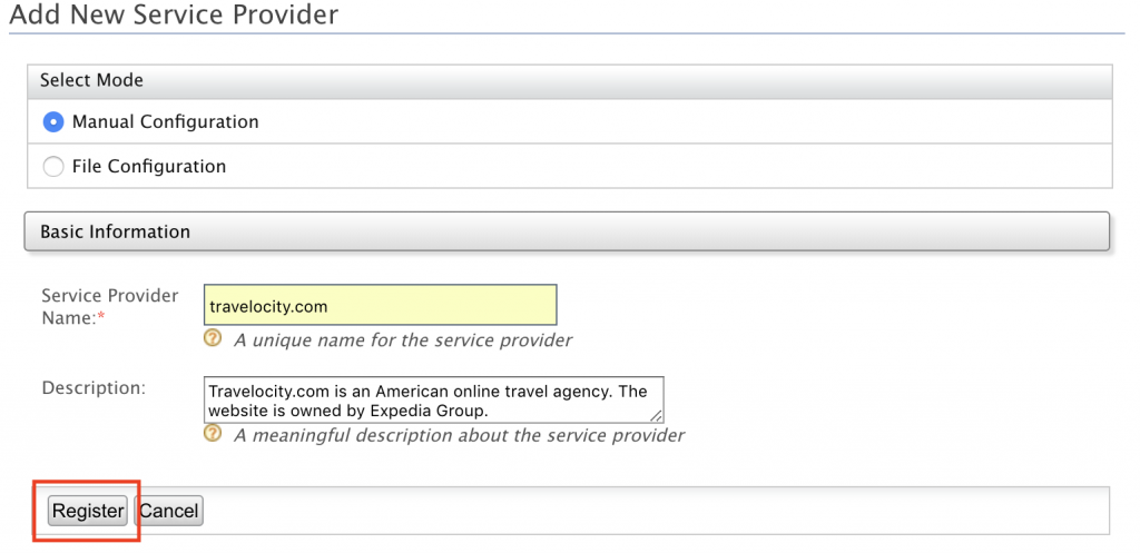 Es hora de configurar en el Identity Server el proveedor de servicios Travelocity.