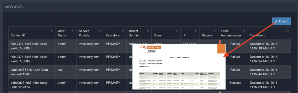 Abajo están el detalle de cada intento de inicio de sesión local, también exportable a pdf: