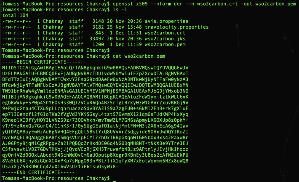 openssl x509 -inform der -in wso2carbon.crt -out wso2carbon.pem