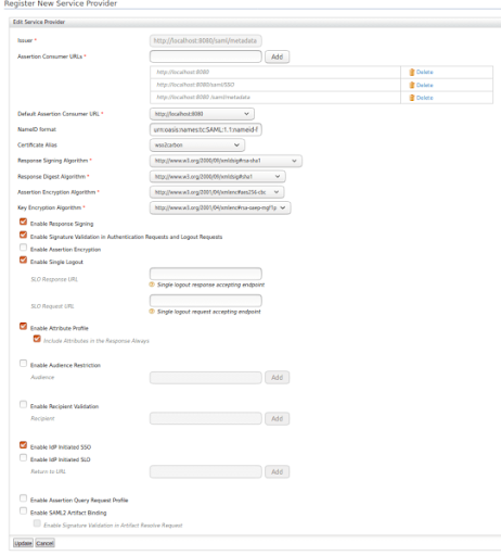 | Assertion Consumer URLs | http://localhost:8080
