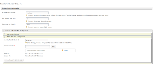 Cliquez sur le bouton «Inbound Authentication Configuration forms», développez l’onglet «SAML2 Web SSO Configuration», puis cliquez sur le bouton «Download SAML Metadata».