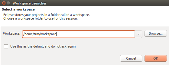 After that, the Eclipse workspace needs to be selected, which is the location where our projects will be stored.