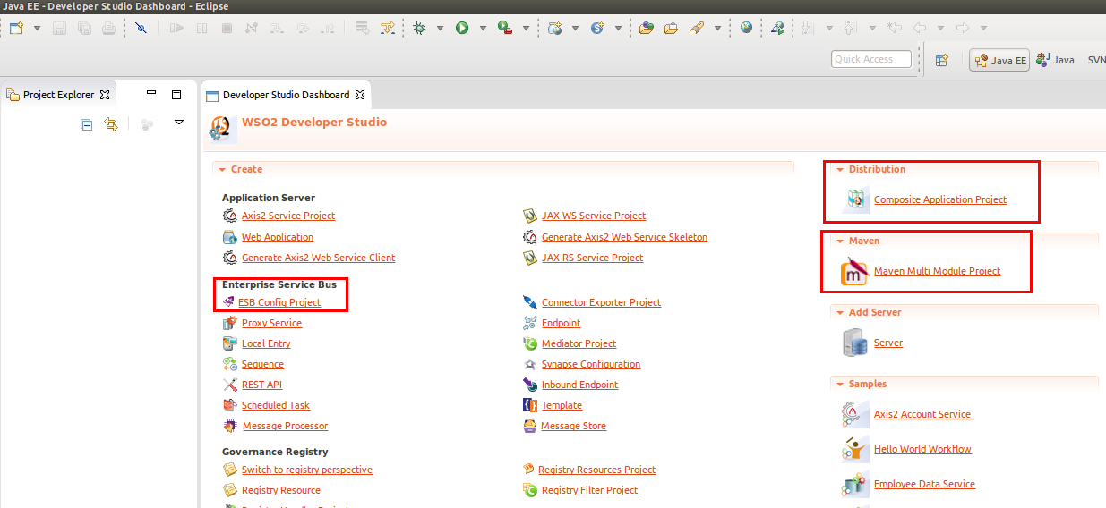 The Eclipse development environment then opens with the required plugins for developing on WSO2’s Carbon platform.
