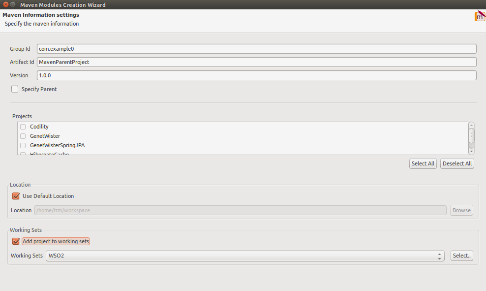 As with the ESB Config project, select the Multi Module Project as the “parent” project and press Finish.